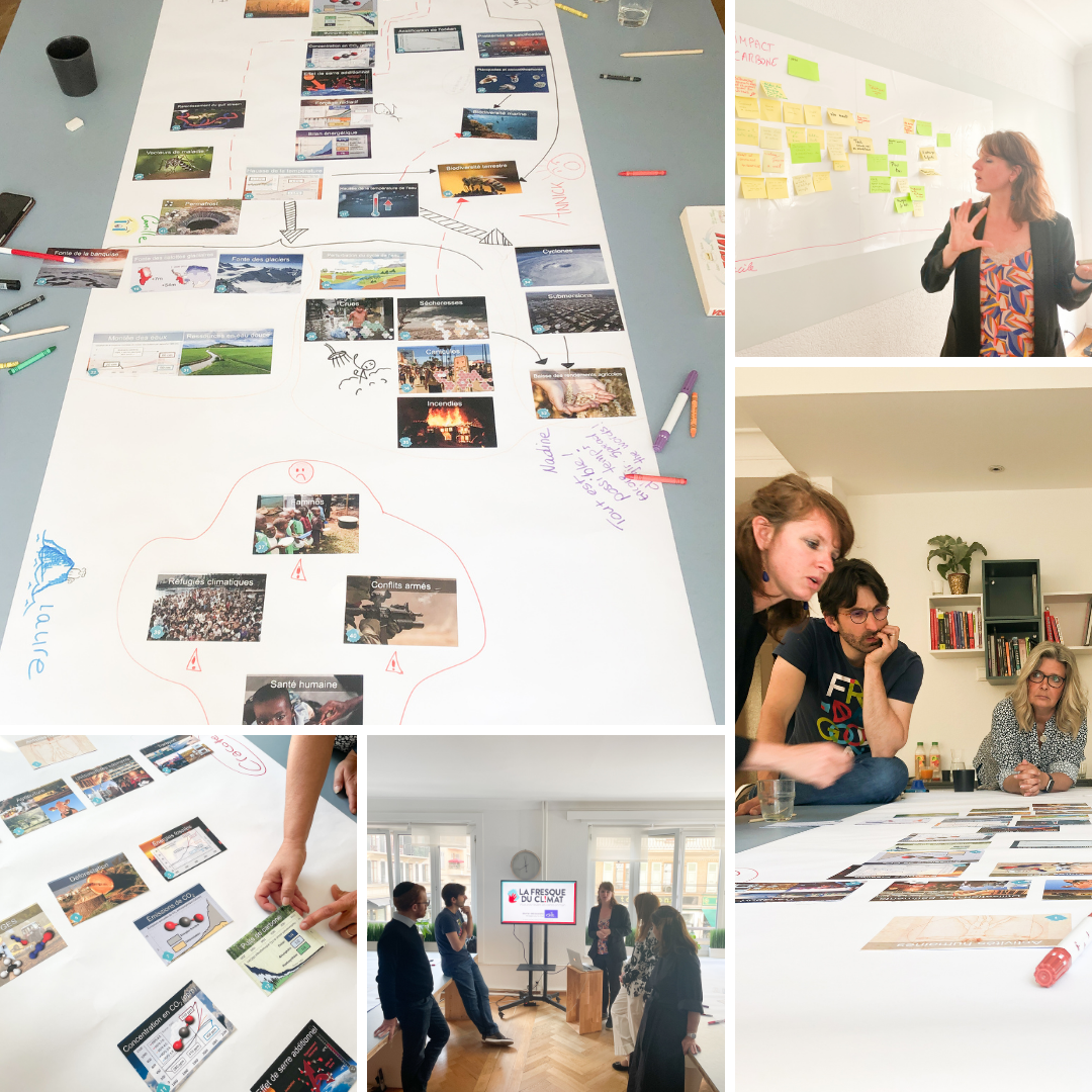 Une première étape nous a semblé essentielle : comprendre les enjeux et mécanismes du dérèglement climatique… en équipe ! C’est ainsi que nous avons organisé dans nos locaux un atelier intitulé « Fresque du Climat » au printemps 2022. Trois heures en petits groupes pour saisir l’essentiel des liens de causes à effets entre les activités humaines et leur impact sur l’environnement. L’occasion de prendre conscience de notre ignorance sur certaines thématiques, réaliser à quel point tout est interdépendant et qu’il n’y a pas de « petites actions » (avec des millions de colibris, on peut certainement éteindre un incendie ?).