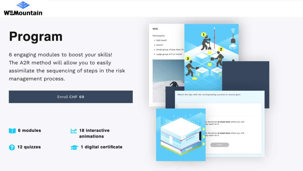 Our team at eSkills assisted WEMountain to create OFF-PISTE, an e-learning course specially designed for backcountry skiers and riders, who want to learn the skills they need to ski off-piste in safety.