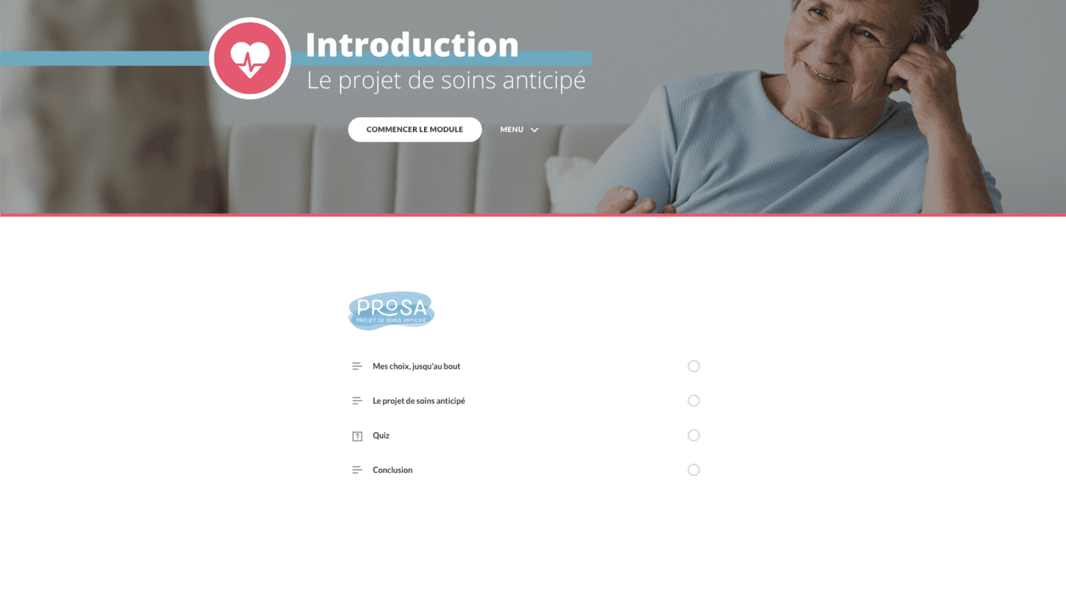 Le résultat final nous a montré l’immense plus-value apportée par eSkills qui a créé des modules d’e-learning à la fois clairs et concis mais aussi agréables à découvrir et parcourir, qui donnent envie d’apprendre. Ces modules sont de magnifiques outils pour sensibiliser et former les professionnel∙le∙s de la santé ainsi que la population sur le projet de soins anticipé et les thématiques qu’il aborde, qui nous concerneront tous un jour ou l’autre.