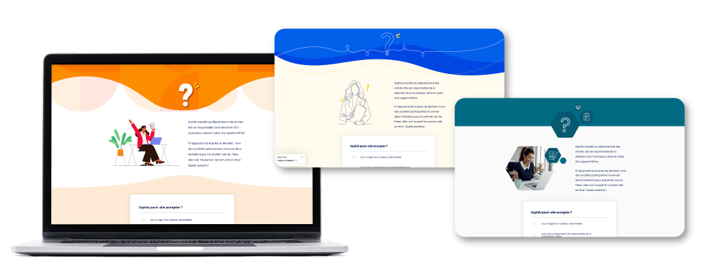 C’est pourquoi nous concevons des modules e-learning de 15 à 20 minutes, basés sur des cas pratiques interactifs inspirés de votre activité.